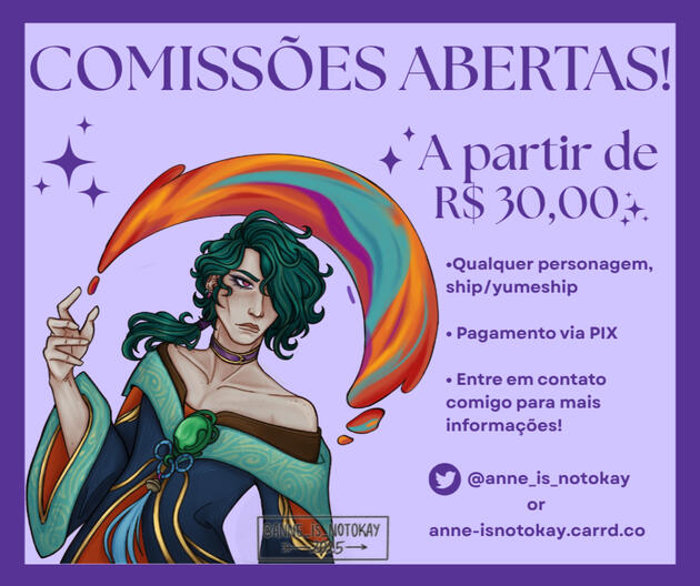 20 . she/her . BRHello! I'm Anne and I'm a self-taught artist from Brazil! I mostly draw as a hobby, focusing on my current interests and comfort characters, but I'm also available for commissions to bring your requests to life!Commission status: OPEN!