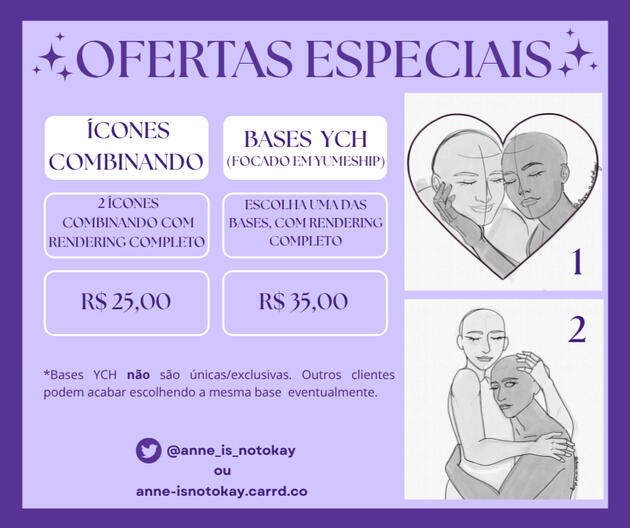 20 . ela/dela . BROlá! Me chamo Anne e sou uma artista autodidata do brasileira! Desenho principalmente por hobby focando nos meus interesses atuais, mas também estou disponível para trabalhar em encomendas para dar vida aos seus pedidos!Status das comissões: ABERTAS!